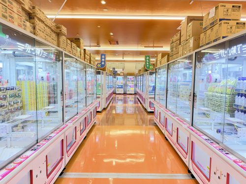 「倉庫系」クレーンゲームの醍醐味でもある、お菓子やカップ麺、飲料などの食品系景品も大量ラインナップ。ついつい大人買いならぬ「大人獲り」したくなるボリュームです。