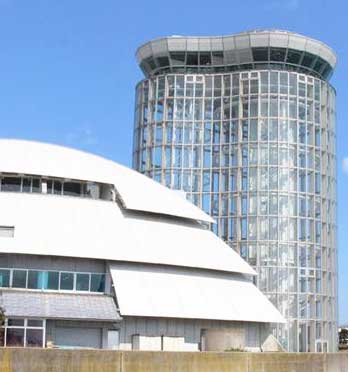 鳥取県境港市の県立「夢みなとタワー」(写真、高さ43メートル)が、日本一低いタワーに認定された。