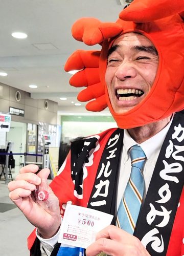 「カランカラン」と鈴の音を合図に始まった「カニカプセルで運だめし」。