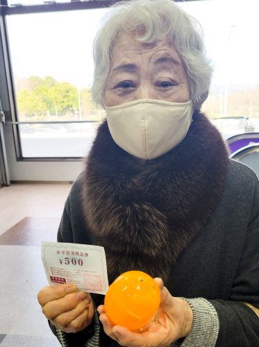記念すべき1番目に挑戦されたのは、境港市誠道町から来られたという80代の女性。「ガチャガチャは初めてでしたが楽しかったです。」とにっこり。