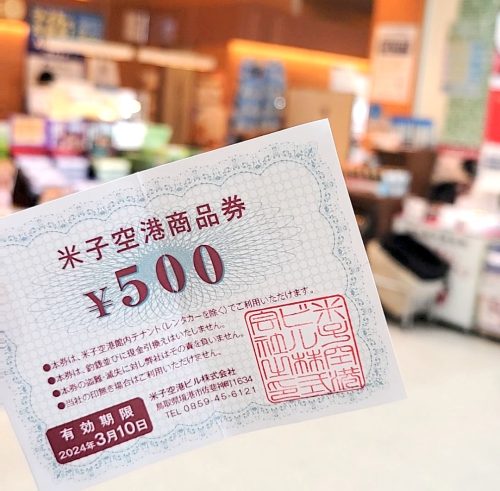■当選された方も含め参加者にはもれなく、「米子鬼太郎空港内テナント」、「セブンイレブン米子鬼太郎空港」で使える「米子空港商品券500円」がもらえます。