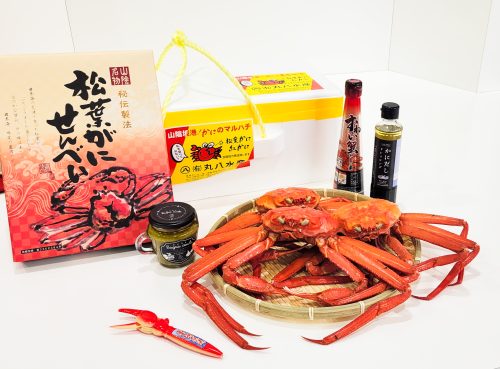 境港市の水産会社、丸八水産社長の濱口さんの目利きによる、厳選された境港産紅ズワイガ二3杯がセットになった”カニ賞”や、カニせんべいなど、カニに関する商品が毎日当たるチャンスです。