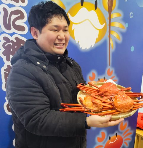 初日のこの日、一日に一人だけ当たる大当たりのカニ賞は、26歳の男性でした。