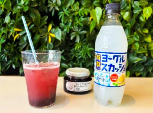 「サントリー天然水 特製ヨーグルスカッシュ」と、奥大山ブルーベリーファーム産の「ブルーベリージャム」を使ったオリジナルドリンクづくりを楽しめます。
