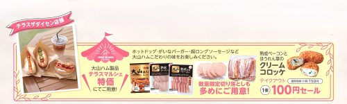 その他、大山ハム製品もいつも以上のお買得価格にて販売。ホットドッグ、がいなバーガー、超ロングソーセージなど、大山ハムこだわりの味が楽しめます。