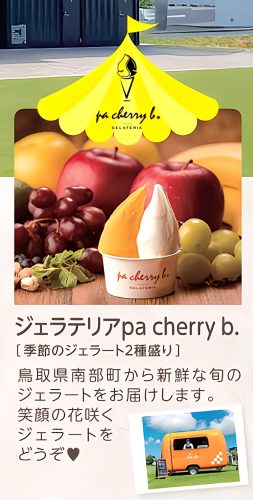 南部町にあるジェラートショップ「pa cherry b. (パッチェリービー)」。新鮮な旬の食材を使用した”季節のジェラート2種盛り”を販売します。