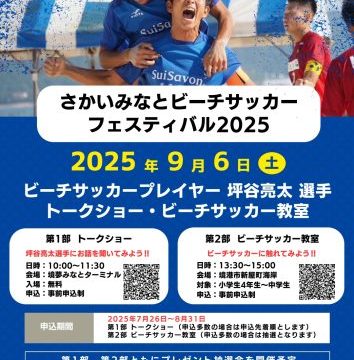 境夢みなとターミナルで、ビーチサッカーを楽しめる特別イベント 「さかいみなとビーチサッカーフェスティバル2025」 が開催されます!開催日は 2025年9月6日(土)トークショー10:00〜11:30。ビーチサッカー教室13:30〜15:00。