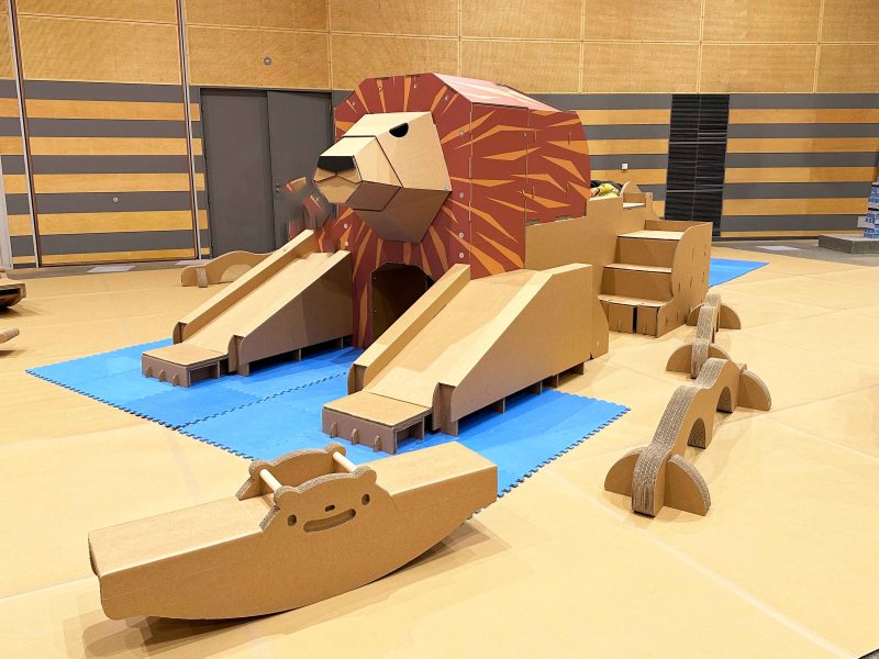 そのほか子どもたちの笑顔があふれるダンボール遊具がたくさんです。