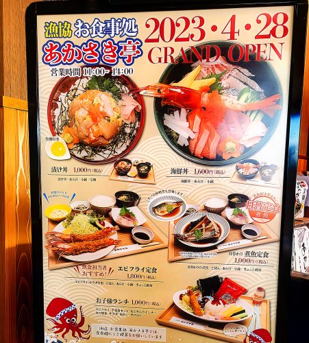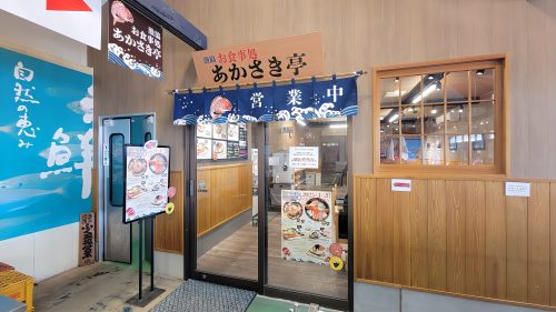 鮮魚直売センター内にオープンした「お食事処 あかさき亭」は、地元で水揚げされた新鮮な魚介などを使用した、美味しい料理が楽しめるお店です。