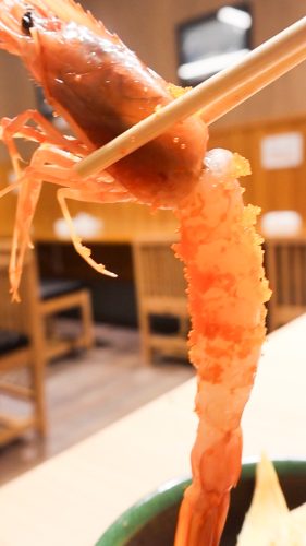 この日は、ヤイトガツオ、ハマチ、ヨコワ(マグロの子)、琴浦サーモン、白いか、そして大きな赤海老。