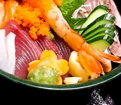 新鮮なお刺身たっぷり、ボリューム満点の海鮮丼。