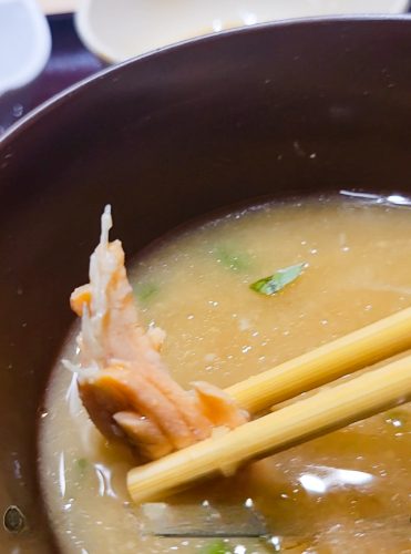 魚のうまみたっぷりのあら汁も美味しい。温まります。