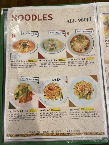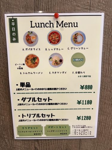 タイレストランソンラオ安倍店のメニュー