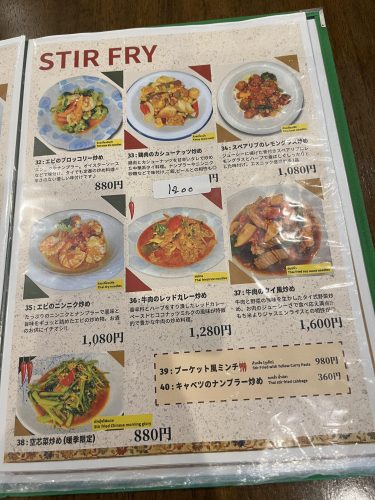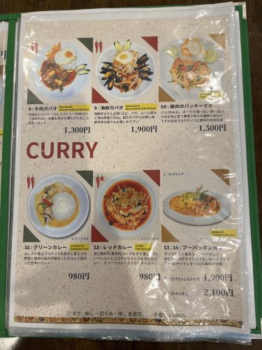 カレーメニューもあり、タイ料理の定番とも言える「グリーンカレー」や「レッドカレー」など、スパイシーな料理もあります。