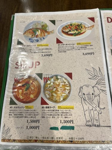 日本でも知名度の高い「トムヤムクン」や「田舎スープ」などの、スープメニューも注文できます。