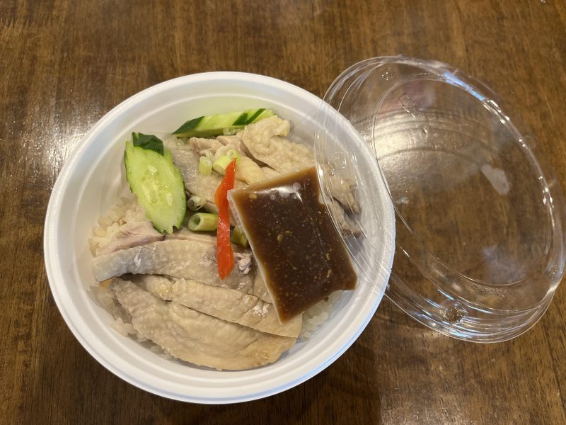 こちらは、「カオマンガイ」です。柔らかな茹鶏をご飯にトッピングした屋台飯!相性抜群のお手製のソースが付いていて、とても美味しかったです。