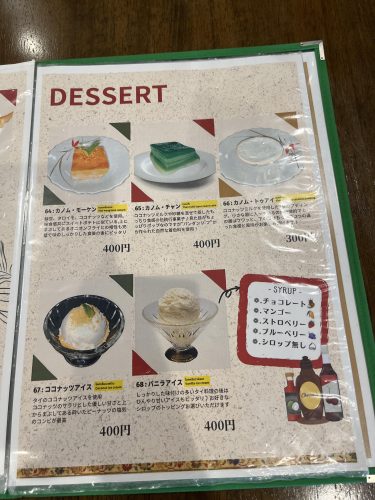 食事の後に嬉しいデザートメニューもありました。