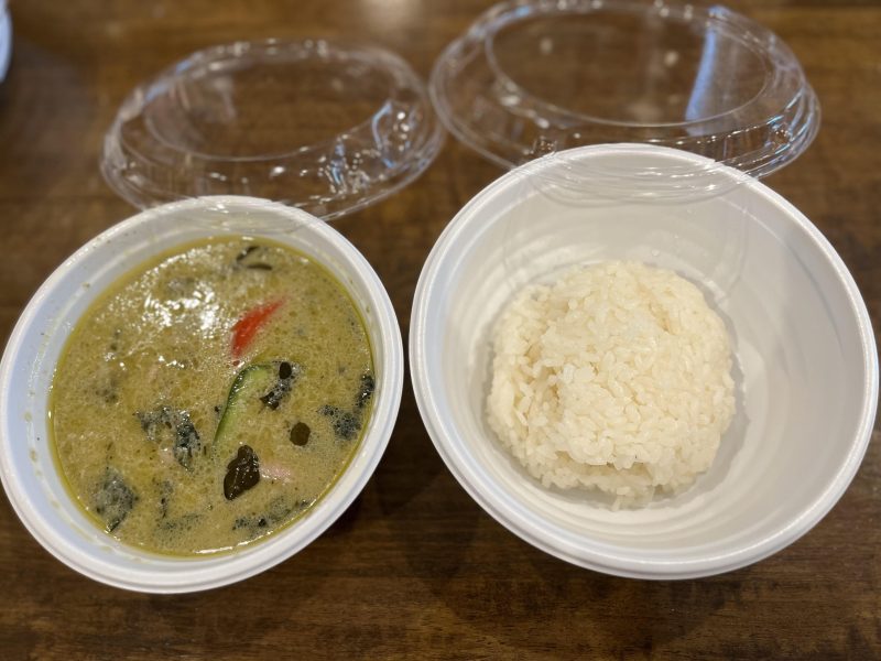 今回は、「ガパオライス」と「グリーンカレー」、「カオマンガイ」をテイクアウトしました。