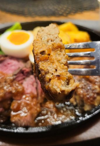 鉄板ビーフハンバーグ&ハラミローストビーフステーキ