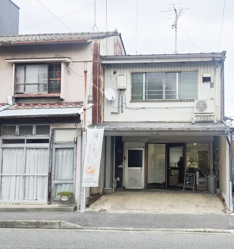 お店は道路から少し奥まった場所にあり、のぼり旗が目印です。