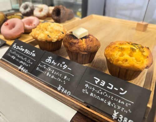 人気のマフィンあんバターと、ココナッツクランチのドーナツ。軽食にもぴったりです。
