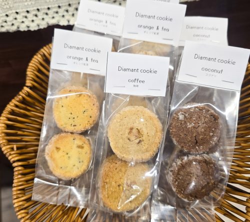 ラッピングされたクッキーなどの焼き菓子の販売もしています。ちょっとした手土産やギフトにもぴったりです。