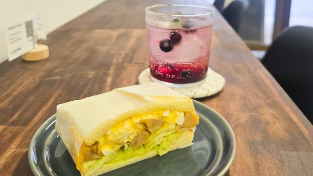 焼きドーナツ、マフィンなどの焼き菓子や、サンドイッチ、ドリンクの提供をしています。