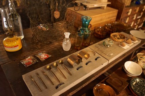 全てオーナーさんが地元の神戸へ行った際にセレクトしているそう。食器やランプシェードなんかも販売していました。たくさんのレトロな雰囲気の雑貨に、思わず立ち止まってしまいます。