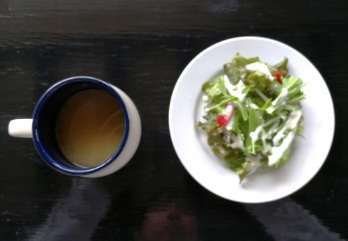 セットでミニサラダ&ミソスープを選ぶことができます。