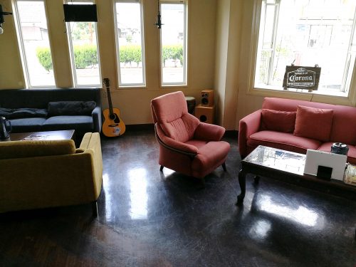 それでもソファーがあったり、ギターがあったりで、ゆったりくつろげる感じがでています。