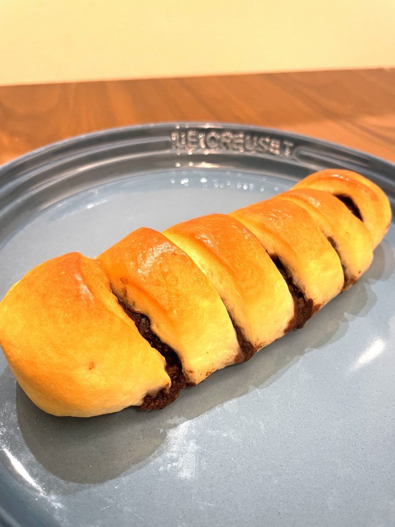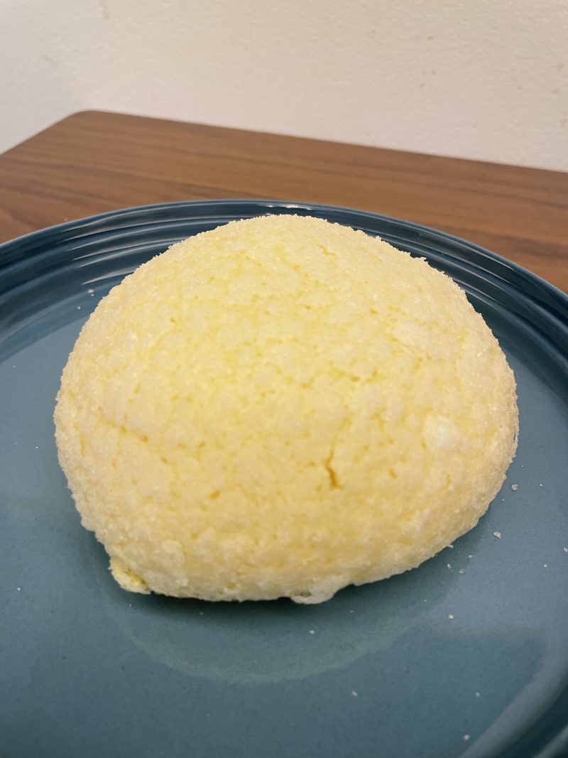 ふっくら膨らんだパンにお砂糖たっぷりのクッキー生地がのっています。