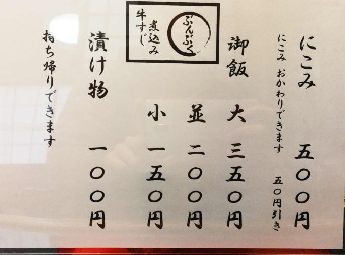 新メニューで限定「ぶんぶく特製 牛すじ煮込みカレー」も登場していますが、基本的なメニューは牛すじ煮込みのみ。