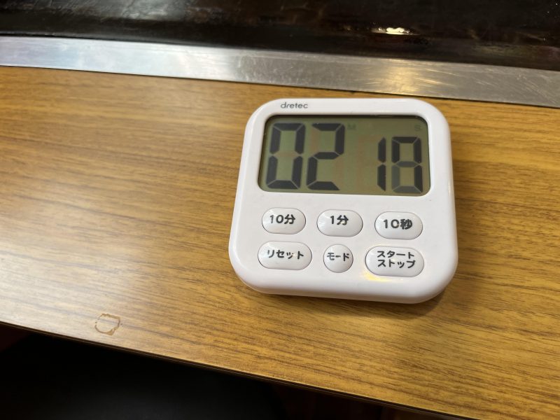 テーブルにあるタイマーがあるので、3分測ります。