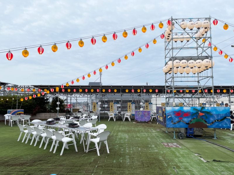 屋上にはやぐらや提灯があり、お祭りのような雰囲気になっています。