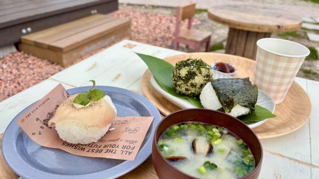 元保育士の店主が作る、温かいおにぎりとみそ汁が楽しめます。