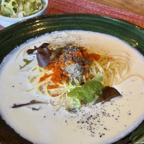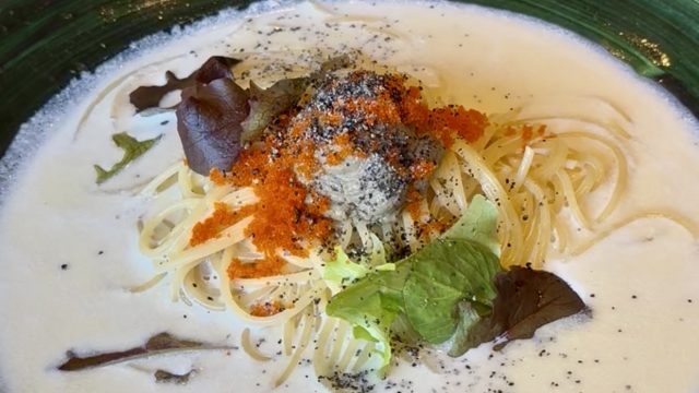 食べたのはカニみそクリームのパスタ。濃厚なカニみそとたっぷりのクリームソースがよく合います。