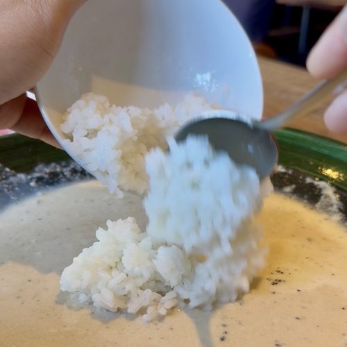 常連さんの間で密かなブームとなっているのが、余ったパスタソースに白ご飯を合わせる楽しみ方。粉チーズとブラックペッパーをパラリとかければ、最後の一滴まで堪能できる即席リゾットに早変わりです。