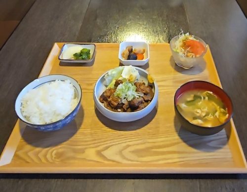メインの「どて焼き」と、ご飯、おみそ汁、サラダ、小鉢、お漬物付です。