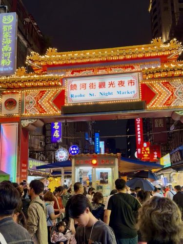 1日目の夜は、台北で最も古い夜市のひとつ饒河街観光夜市(ラオファジェグァングァンイェシー) へ。屋台は一本道に並び、歩きやすく初心者にも安心。