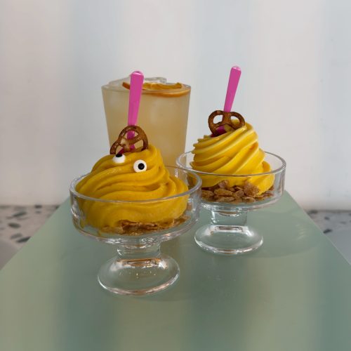 目の前が青い海という最高のロケーション。江原道名物のトウモロコシを使ったアイスは、見た目も可愛く味も濃厚で絶品です!