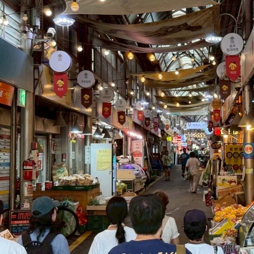 通仁市場(トンインシジャン)でお弁当作り 専用の「コイン」を使って、市場内のお惣菜を少しずつ選んで自分だけのお弁当を作る「お弁当カフェ」が人気。韓国の地元の市場の食べ歩きとビュッフェが合体したような楽しさです。