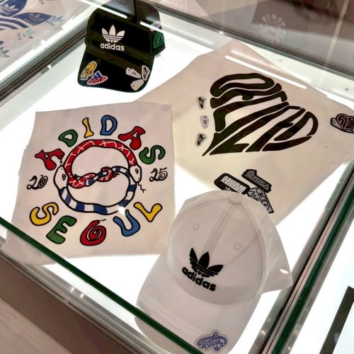 世界に一つのadidasカスタム 明洞(ミョンドン)のフラッグシップ店では、ワッペンやプリントを選んで自分だけのスニーカーやアパレルを作れます。韓国限定のデザインもあり、お土産にも最適。