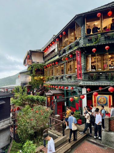 その九份にある「阿妹茶樓(アーメイチャーロウ)」は、九份のシンボル的な茶藝館です。夜になると無数の提灯に明かりが灯り、その幻想的な佇まいは絶好の撮影スポットになります。