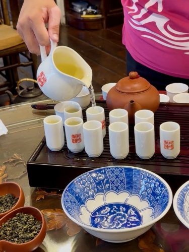 店内では、お店の方が本格的なお茶淹れを実演してくれます。茶葉を取り替えず、何度もお湯を注いで繰り返し飲みます。回数を重ねるごとに味や香りが変化して面白いです。
