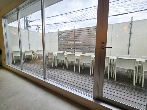 長いテーブルのあるテラス席もあります。