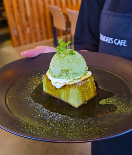 まろやかな口当たりと濃厚な抹茶の味わい。プリンのカラメルソースと上に乗った抹茶アイスが絶妙なバランスです。