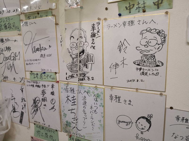 店内は有名人のサインがたくさん。鈴木さん(ラーメン大好き小池さん)のサインもあります!!