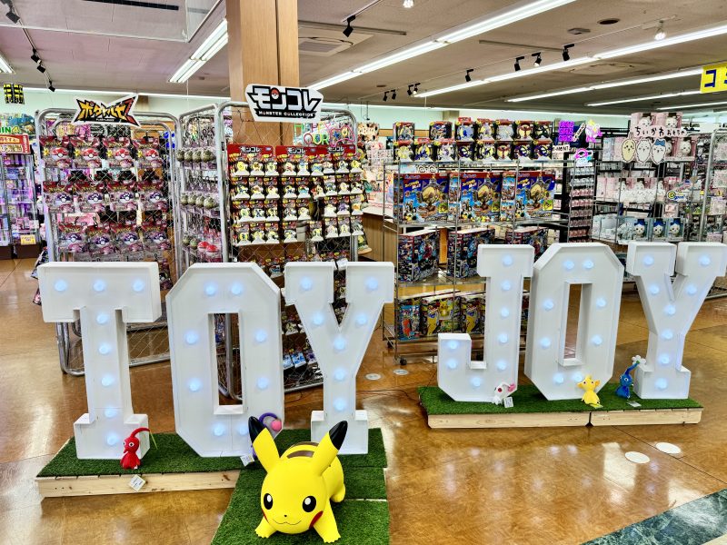 お店入ってすぐ目立ってます!ピカチュウと「TOYJOY」のモニュメントです。