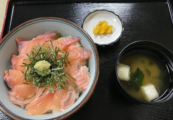 関金の名物の本わさびを使ったワサビ丼。胃腸の冷えの予防、食欲増進、殺菌に良いとのこと。