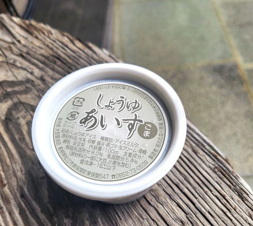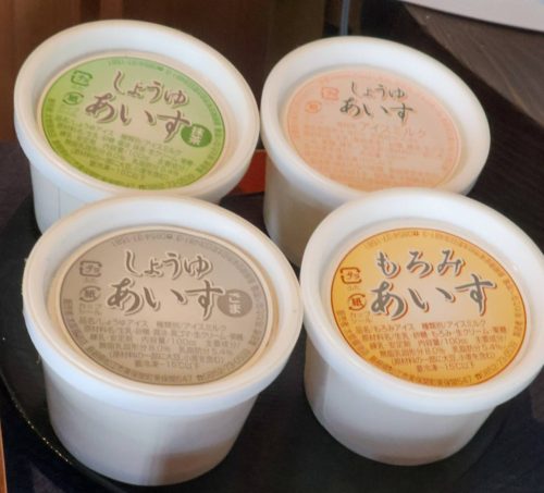太鼓醬油店のしょうゆを使用したアイスクリームは、しょうゆ、ごま、抹茶、もろみの4種類あります。